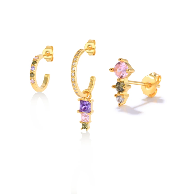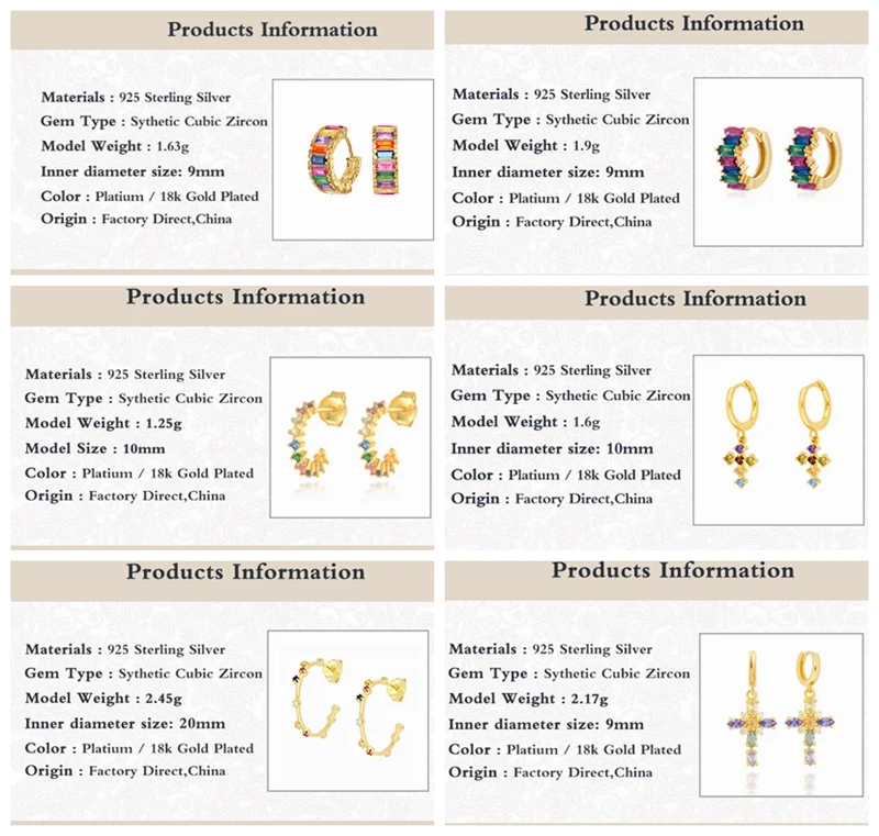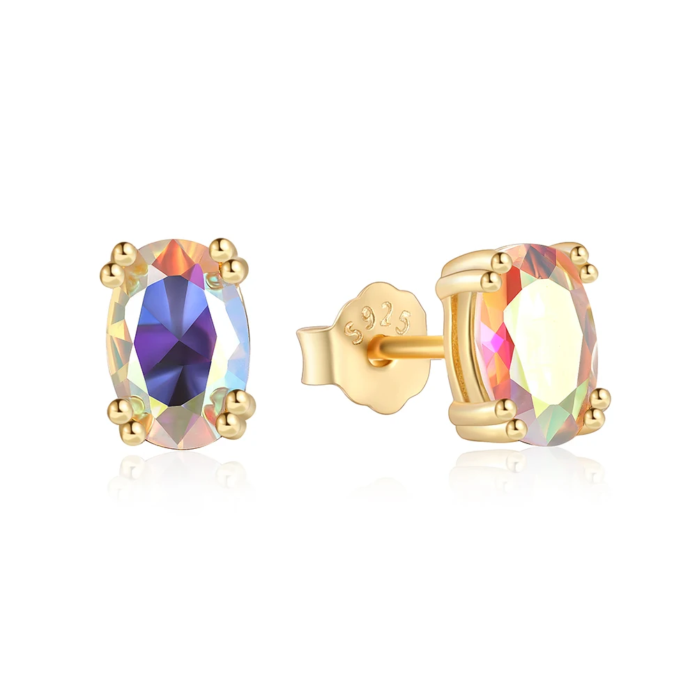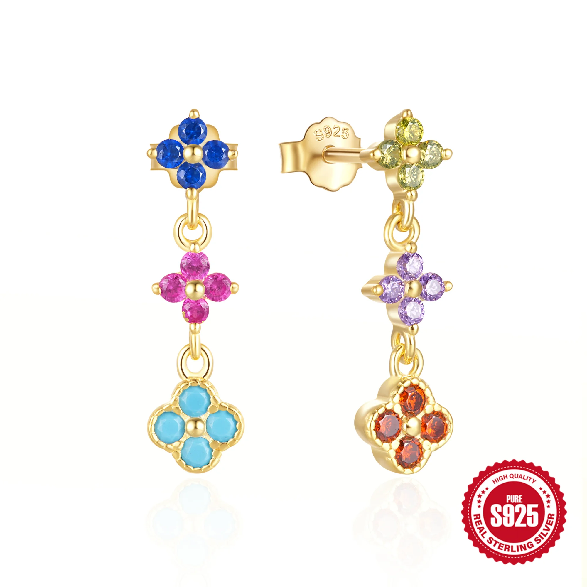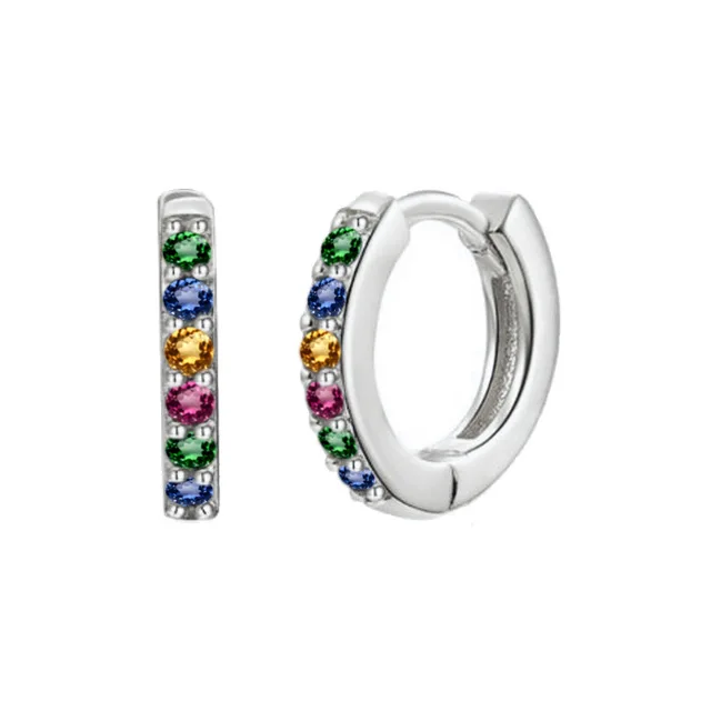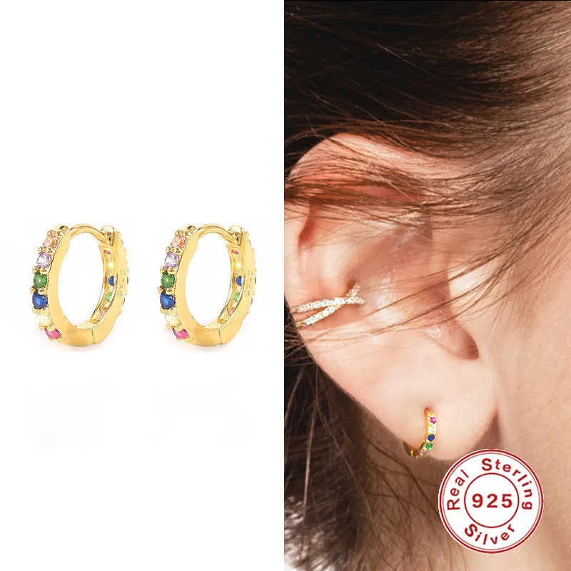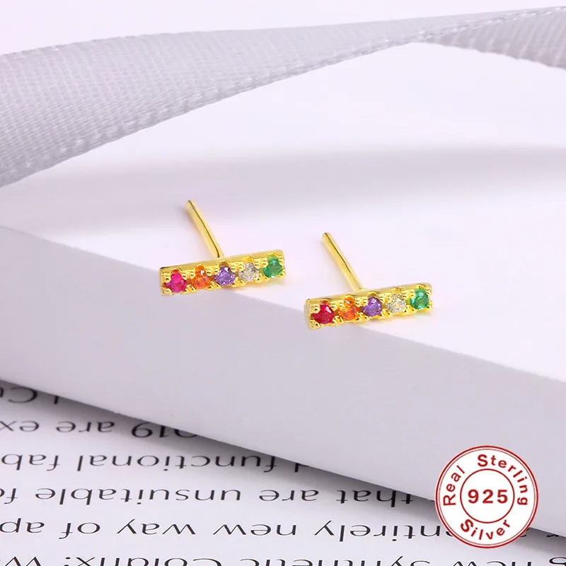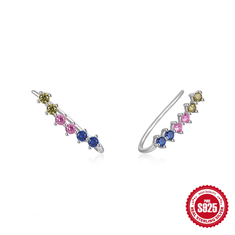 Authentic 925 Sterling Silver Stud Earrings Colorful Zircon Piercing Earring For Women Girl Rainbow Crystal Pendientes Plata 925