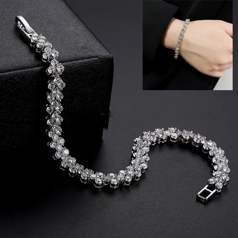 Exquisite Luxury Roman Crystal Bracelet For Women Wedding Gift Korean Rose Gold Silver Color Chain Bracelets Jewelry![]()
