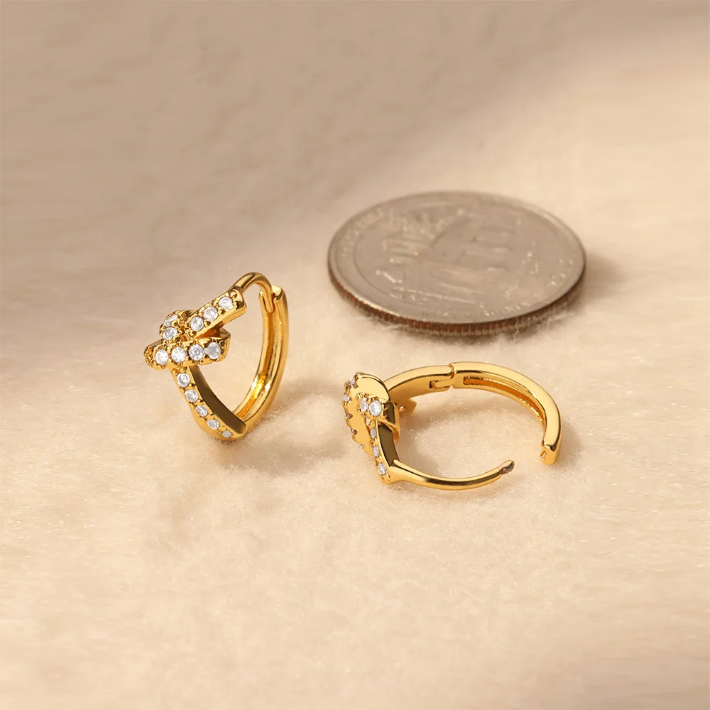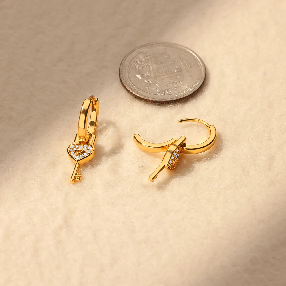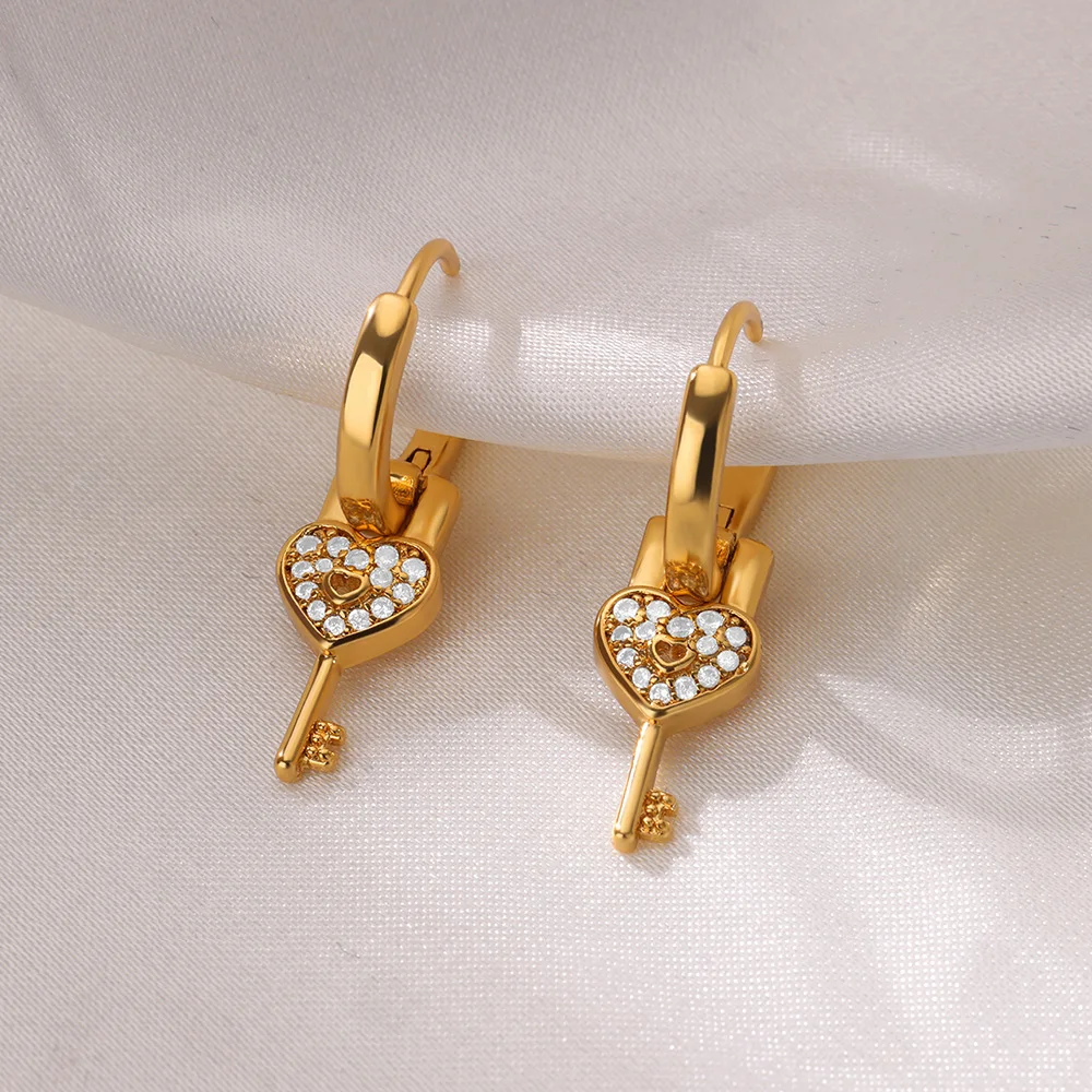 Luxury Heart Key Dangle Earrings for Women Gold Color Stainless Steel Earrings F