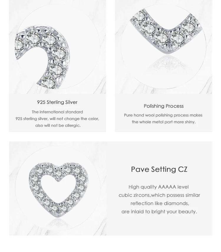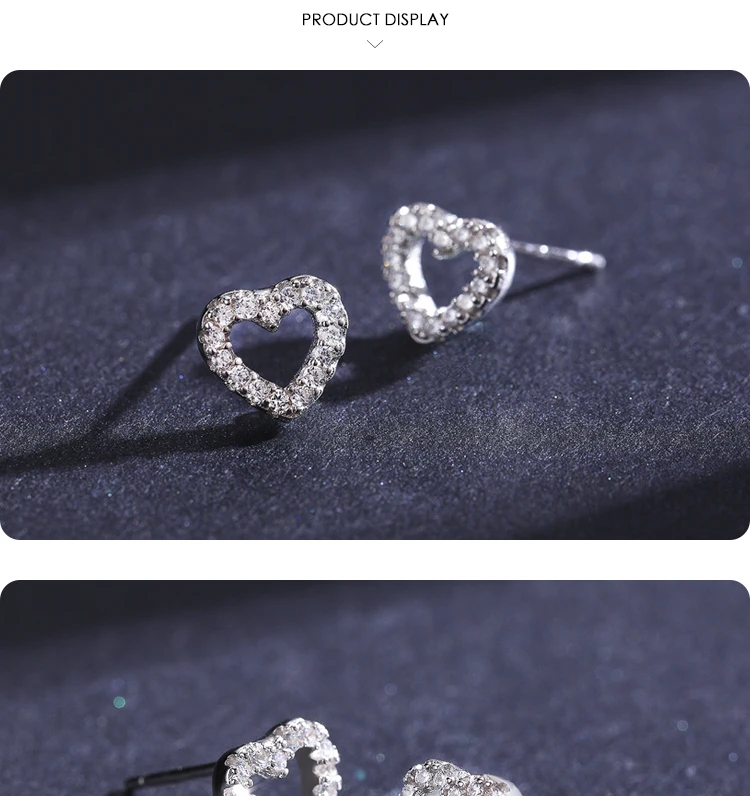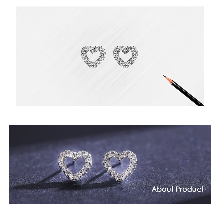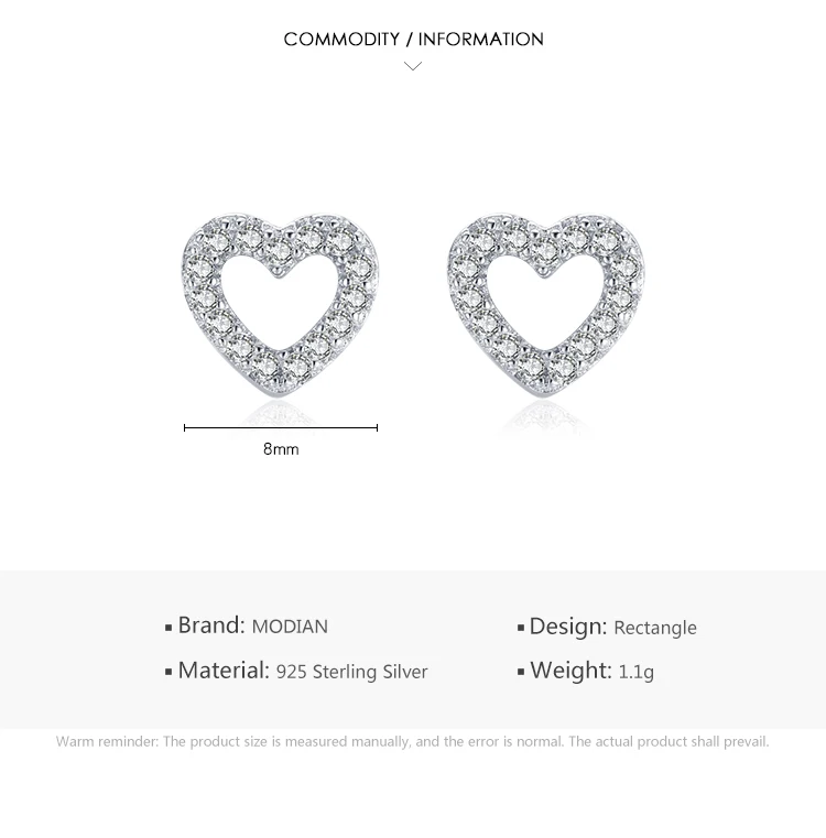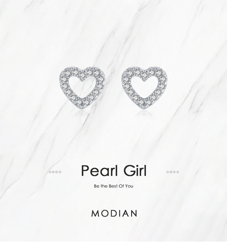 Modian Authentic 925 Sterling Silver Stud Earrings for Women Romantic Heart Earr